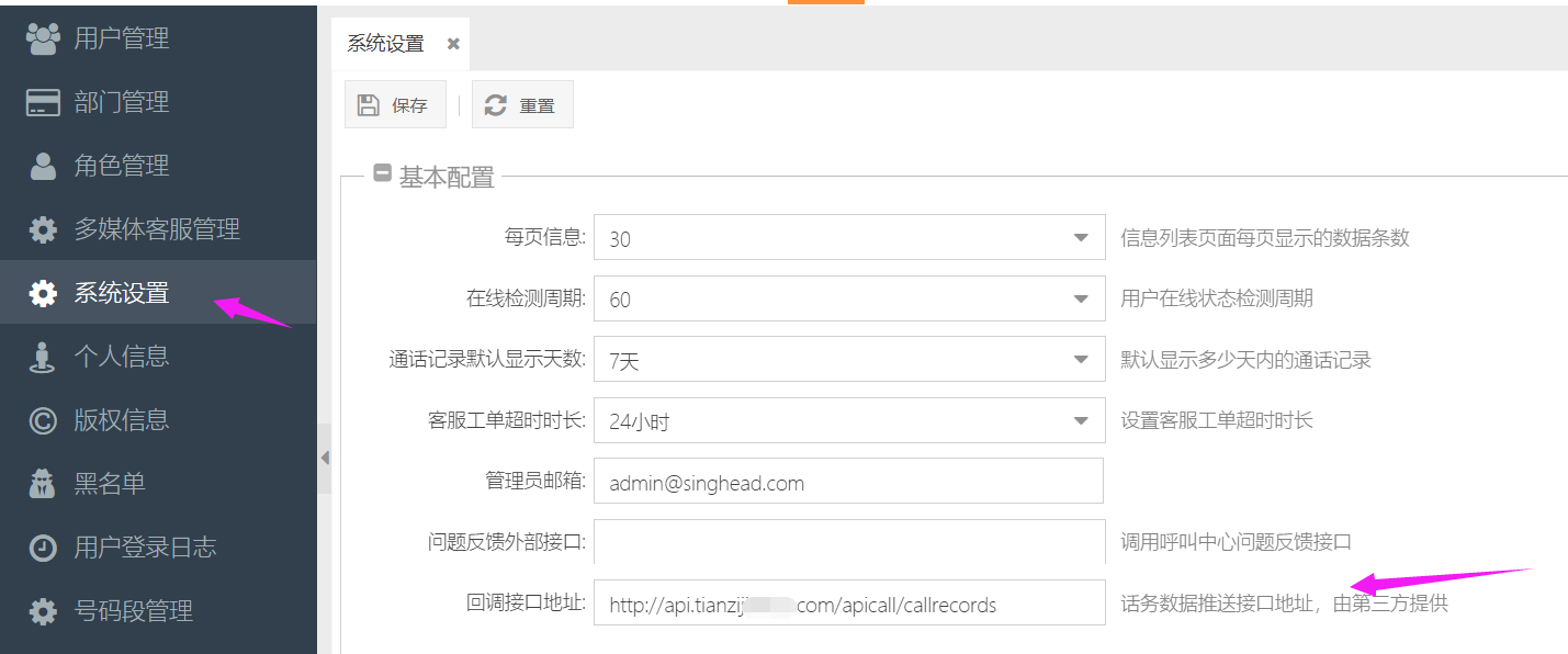 登录系统--->管理--->系统设置--->回调接口地址。配置好回调接口地址,保存即可。