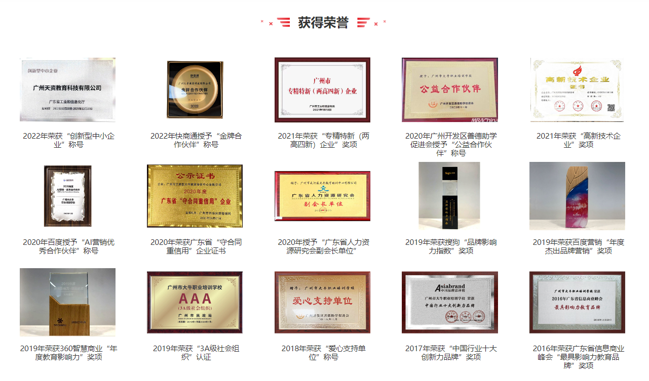 广州市大牛职业培训学校(简称大牛教育)成立于2008年,是一所教育局、人社局双重认证的资深民办学校,隶属于天资教育集团,总部位于广州。经过16年的办学,大牛教育已经成为包含成人学历教育、职业培训的知名教育品牌,获得了“广州市3A级社会组织”、“广东省守合同重信用”等多项荣誉。